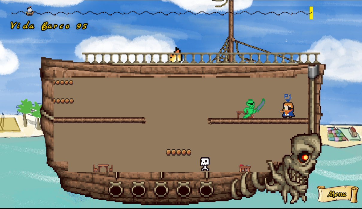 Defiéndete de los enemigos y asegúrate de apagar todos los fuegos antes de que tu barco no resista y termines en el fondo del mar!